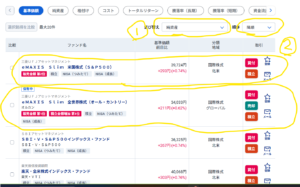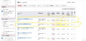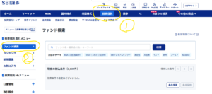 SBI証券でも、ファンド検索で