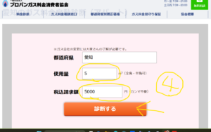 ④料金明細書に載っている「使用量」と「税込請求額」を入力